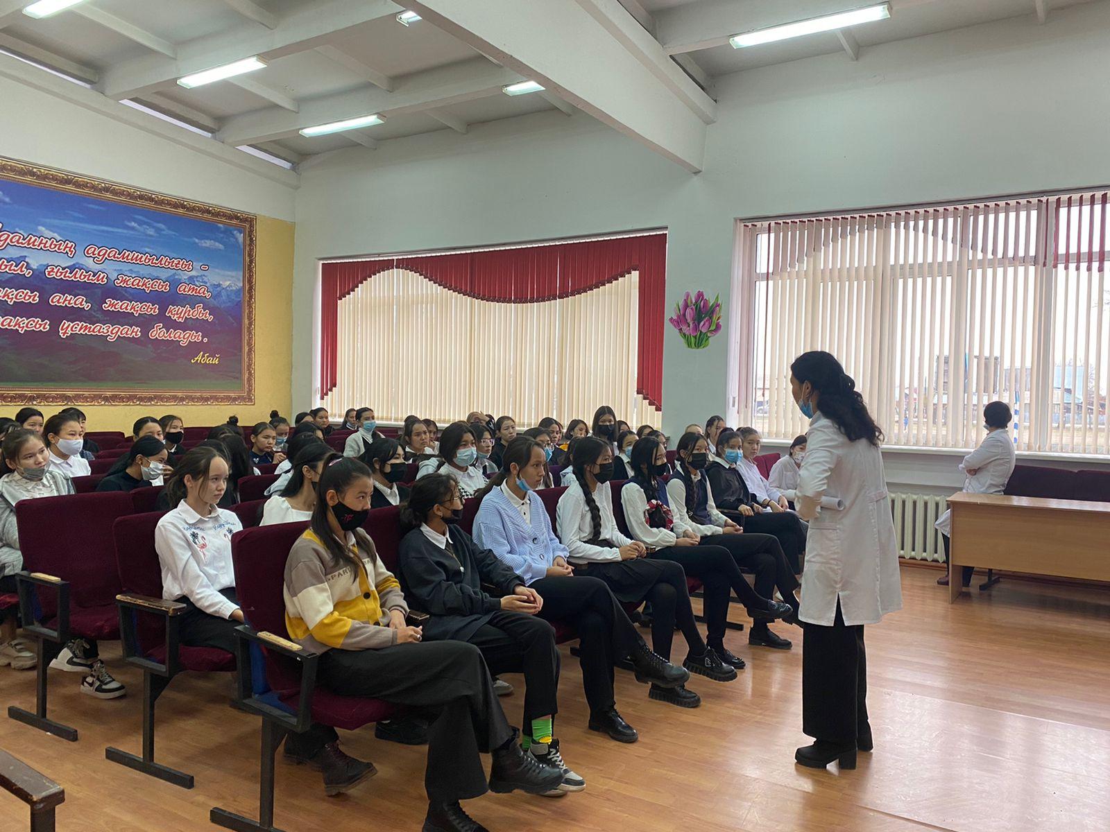 Масымхан Бейсебаев атындағы орта мектеп » Іс-шаралар » “М.Бейсебаев атындағы орта мектебі” коммуналдық мемлекеттік мекемесінде қарашаның 15-і күні мектеп медбикесі Кощегулова Айсулу мен Елтай ауылдық округінің психологі Мақсатова Мадина Исабековнаның қатысуымен “Ерте жүктіліктің алдын алу” тақырыбында 9-