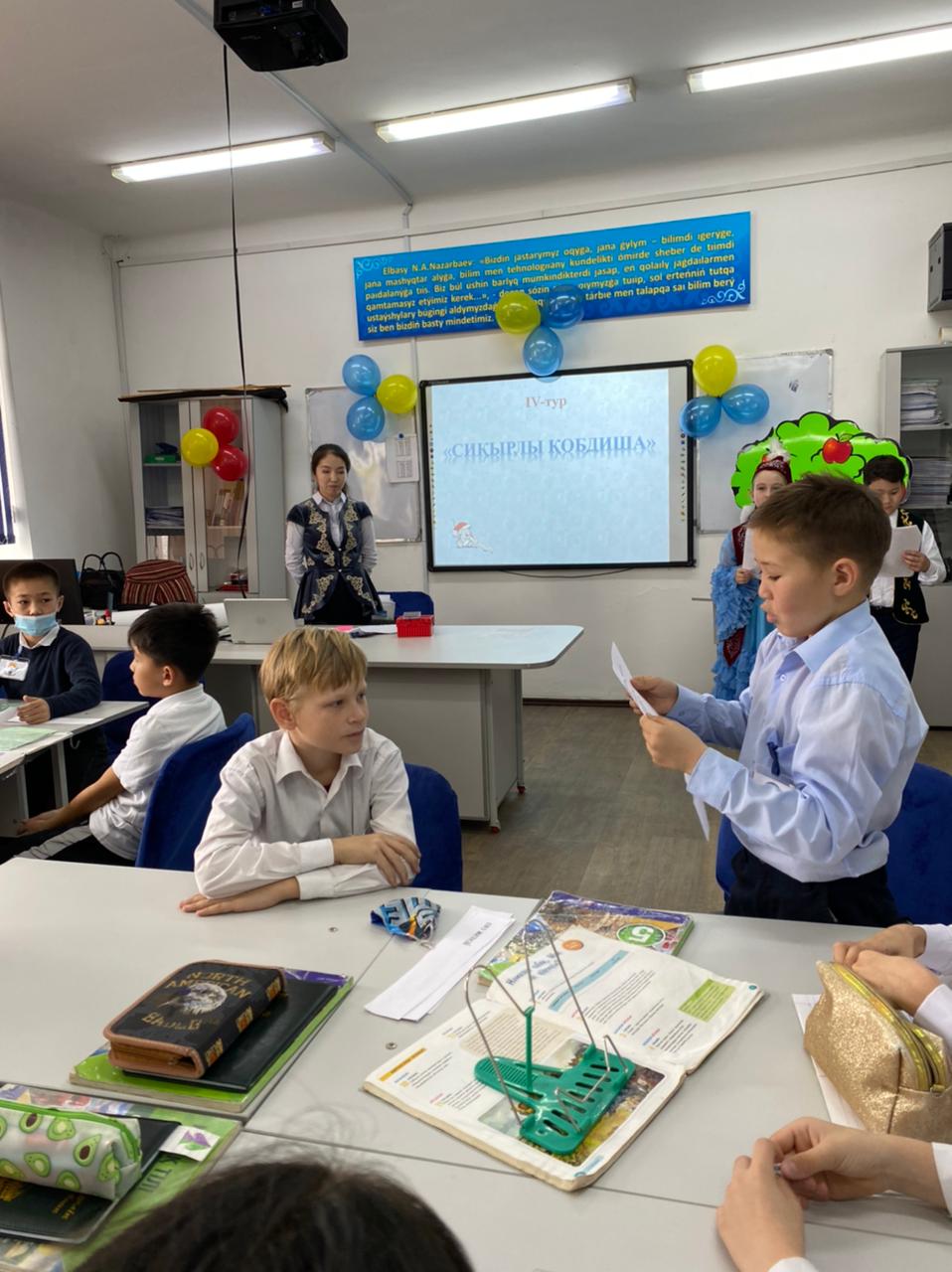 Масымхан Бейсебаев атындағы орта мектеп » Біз туралы » Әдістемелік жұмыстар » Қазақ тілі мен әдебиеті әдістемелік бірлестігінің онкүндігінің жоспары бойынша 5е сыныбында өткізіліп жатқан "Мың бір мақал, жүз бір жұмбақ" атты жарыс сабағы. Жауапты ұстаздар: Копобаева З.К., Советбай А.А.