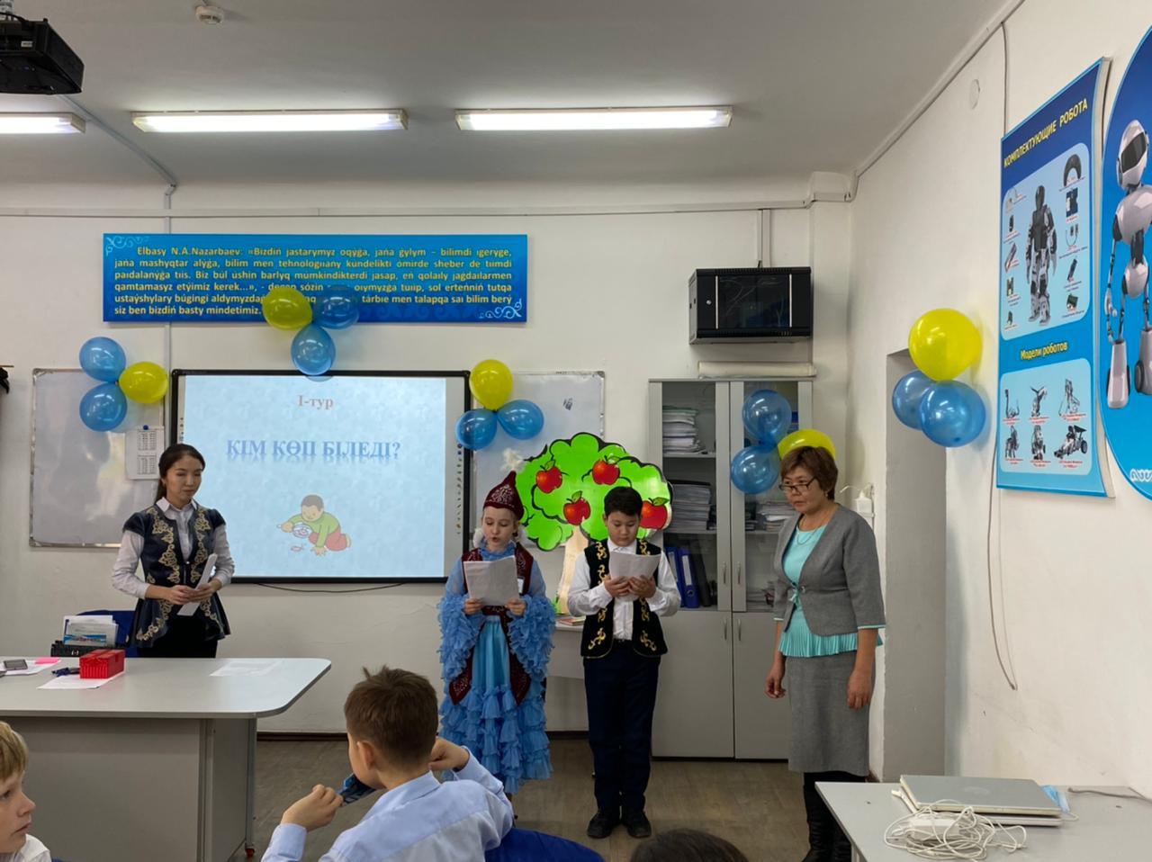 Қазақ тілі мен әдебиеті әдістемелік бірлестігінің онкүндігінің жоспары бойынша 5е сыныбында өткізіліп жатқан "Мың бір мақал, жүз бір жұмбақ" атты жарыс сабағы. Жауапты ұстаздар: Копобаева З.К., Советбай А.А. » Масымхан Бейсебаев атындағы орта мектеп