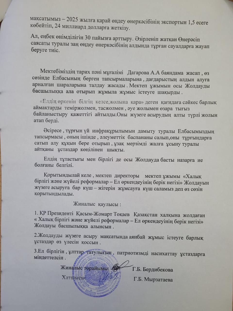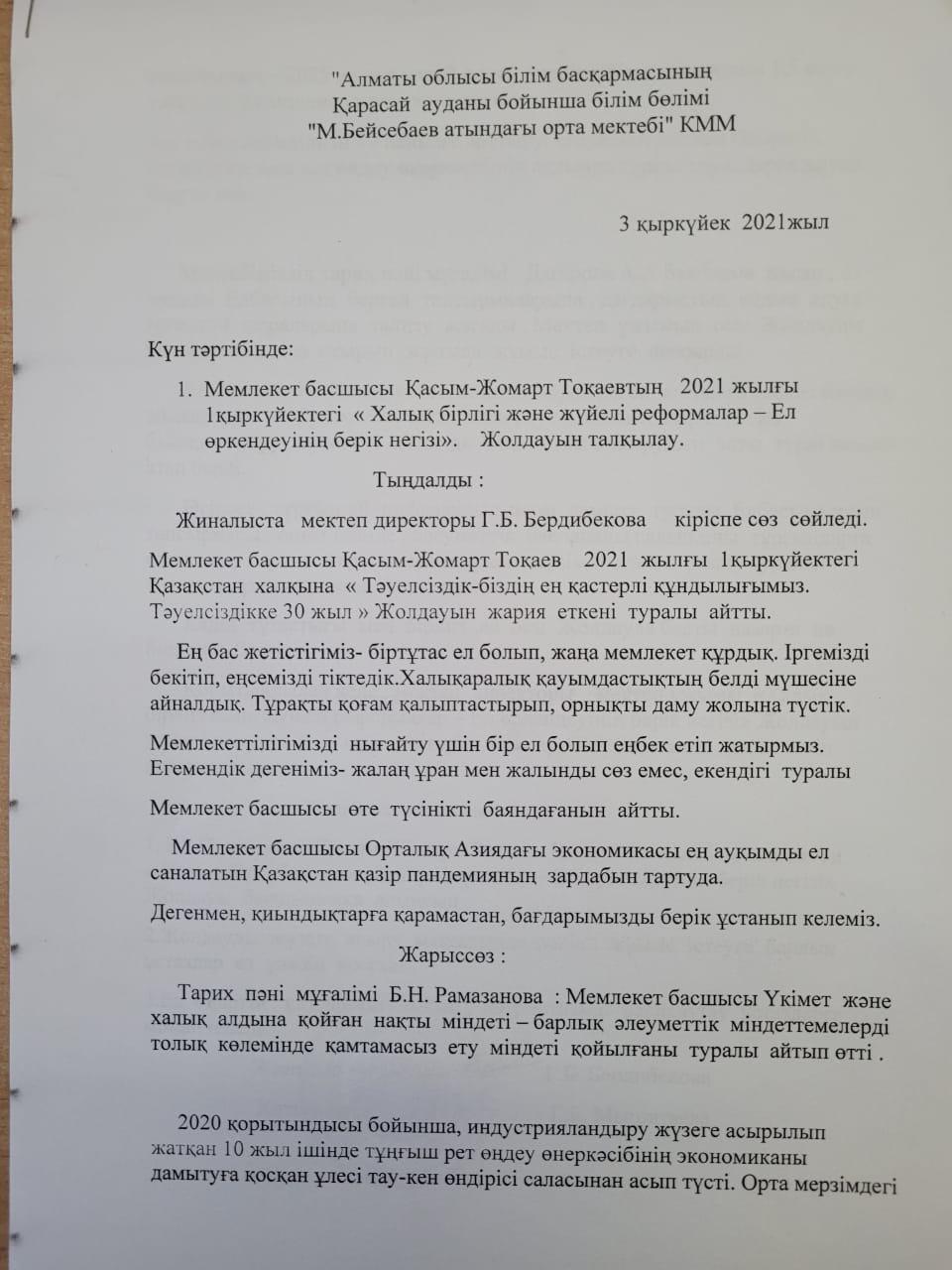 Жолдауды талқылау » Масымхан Бейсебаев атындағы орта мектеп