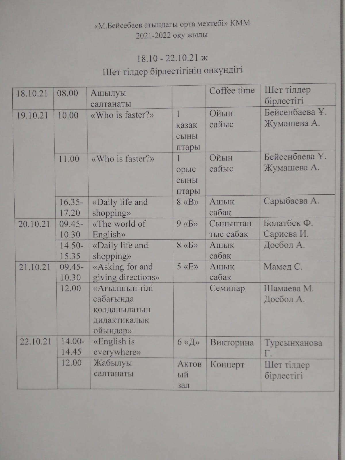 Ағылшын тілінің апталығы » Масымхан Бейсебаев атындағы орта мектеп