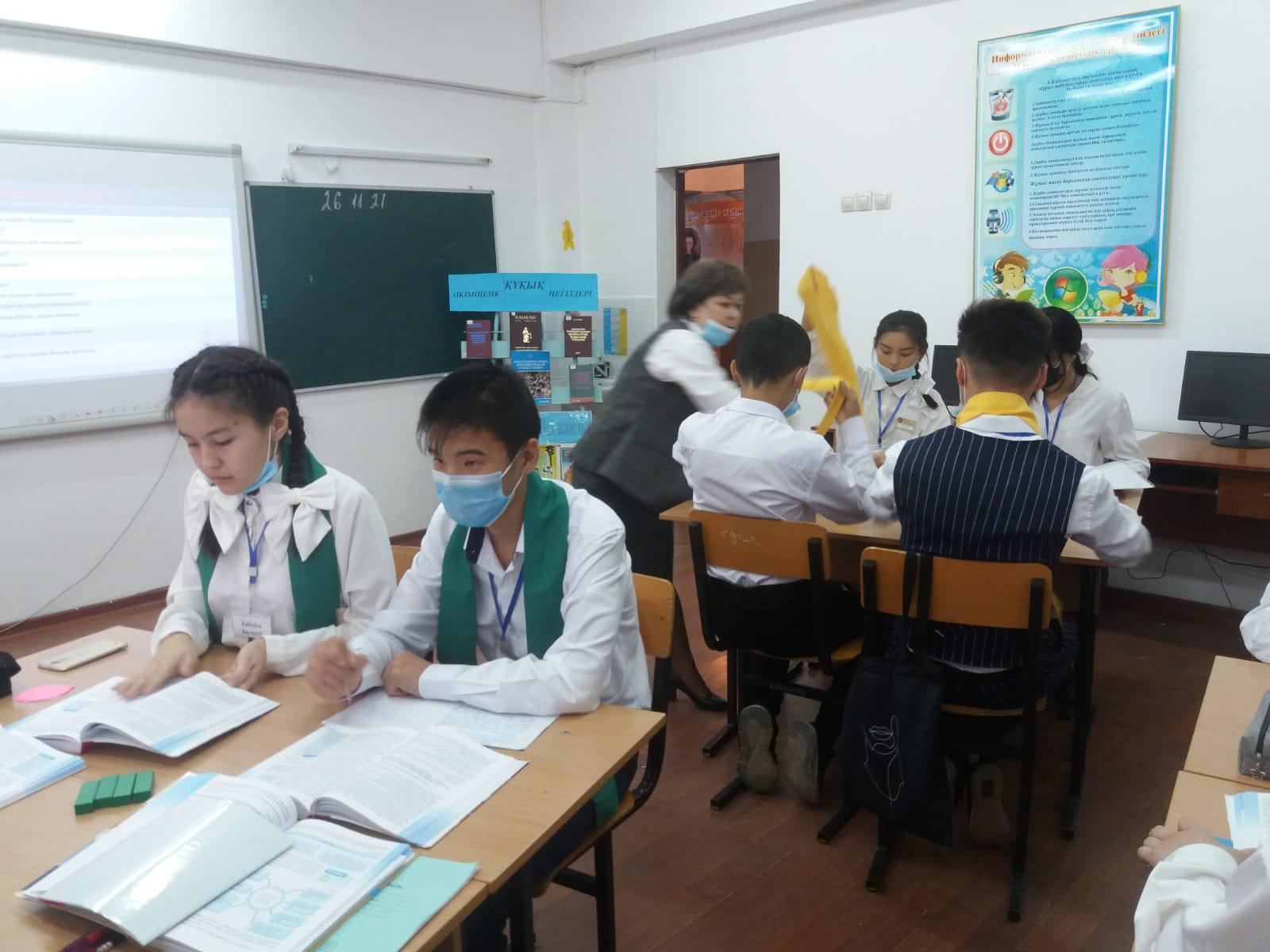 26.11.2021ж. Жармұхамбет ОМ "Құкық және дінтану" бағытында өткізіліп жатқан аймақтық семинарда тарих пәнінің мұғалімі Дагарова Алия Абыйровна "ҚР мемлекеттік басқарудың құқықтық реттелуі" атты 10 сынып оқушыларына арналған сабақ өткізді.