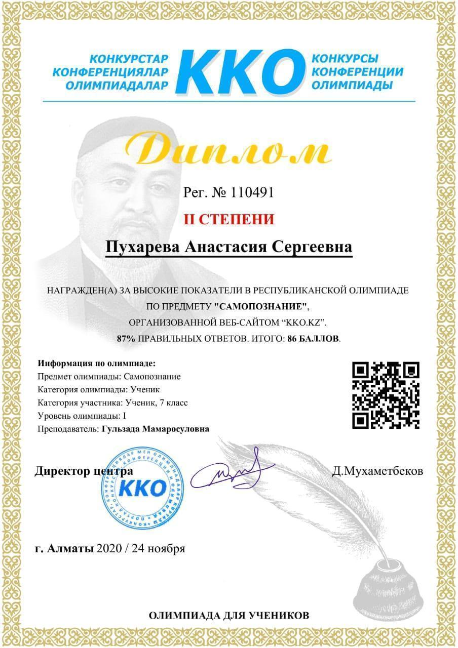 » » » Қашықтықтан өтілген олимпиадан орын алған оқушылар